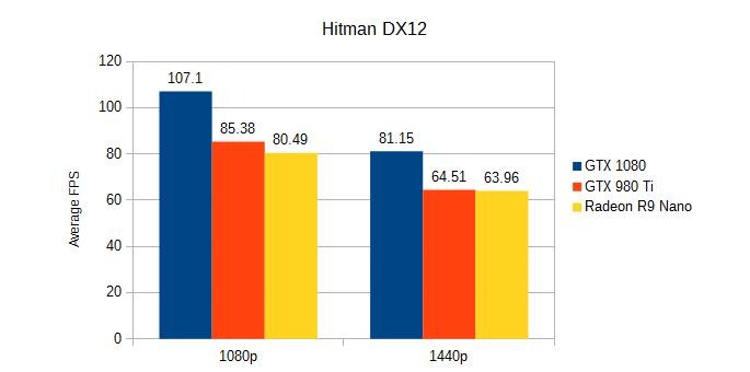 Hitman is our other DirectX 12 benchmark. The game is particularly nice for benchmarking, as it has a dedicated tool that allows you to adjust the settings and run benchmarks without having to load up the game first. For both our benchmarks we're running the game on Ultra, at both 1080p and 1440p.