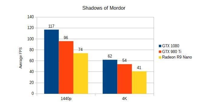 While this game has been out since 2014, it still makes for a great benchmarking. As with our other tests, we've cranked up the settings as high as they would go, on Ultra. Since the game can run higher than our test screen's native resolution, we're testing the game at both 1440p and 4K.