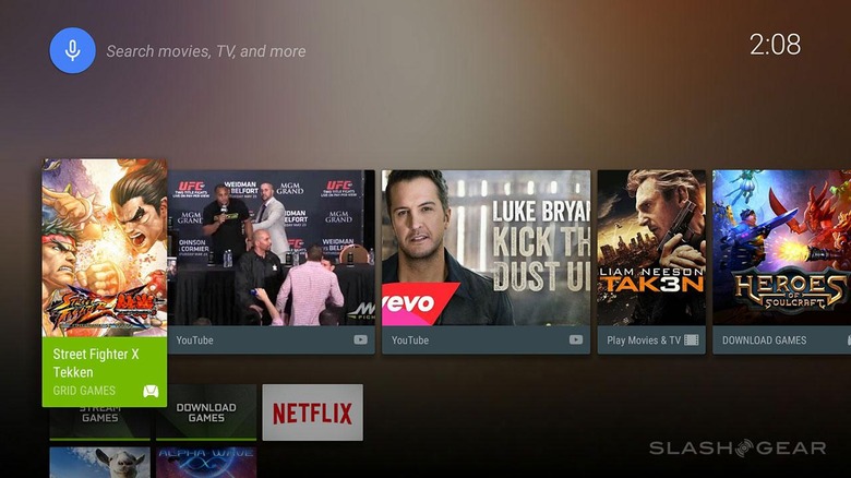 Along the top of the first screen you see after logging in to NVIDIA SHIELD through Android TV you'll see a side-scrolling gallery of media bits you can jump right in on and experience. This gallery changes as you use different apps and play different games, evolving as your tastes change and your experience pushes the machine to know you better.
