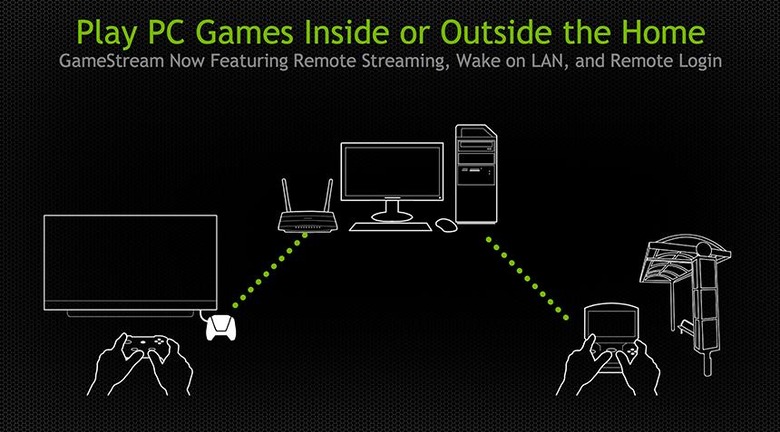 NVIDIA GameStream is an NVIDIA SHIELD feature that allows pairing with your NVIDIA GeForce GTX graphics card-toting PC. When the NVIDIA SHIELD device and your PC are paired with GameStream, you're able to stream full-powered games. Each game is remotely controlled by NVIDIA SHIELD, played on the PC, and mirrored on your NVIDIA SHIELD's display.