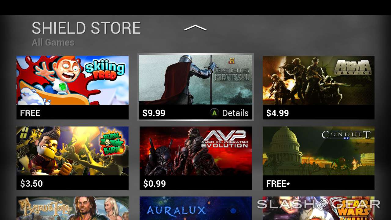Next is the SHIELD Store, this attaching to a series of banner-like images with the titles of the games available to you through Google Play, each of them attached to descriptions and a presentation made to sell you on each of them. As with each of the other bits of the TegraZone here, this set of screens can be navigated with SHIELD's physical controls or with the machine's touchscreen interface.