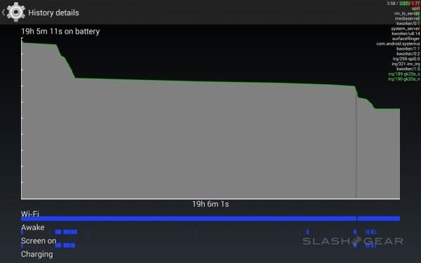 When you've got the NVIDIA SHIELD Tablet asleep, battery drain effectively flatlines. Wireless GameStream takes up the most battery, while non-gaming computing has very little effect on the battery.