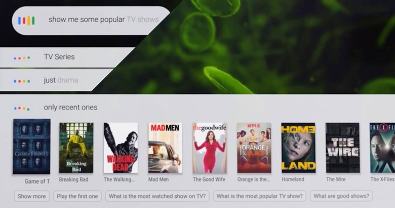 Google voice search has become a lot smarter with this update. This, again, will be coming to the original SHIELD Android TV device too, but it's here immediately. This newest update can be asked to "play some metal on Spotify" or "please show me pictures from Springfield" (that'll seek out photos in Google Photos.