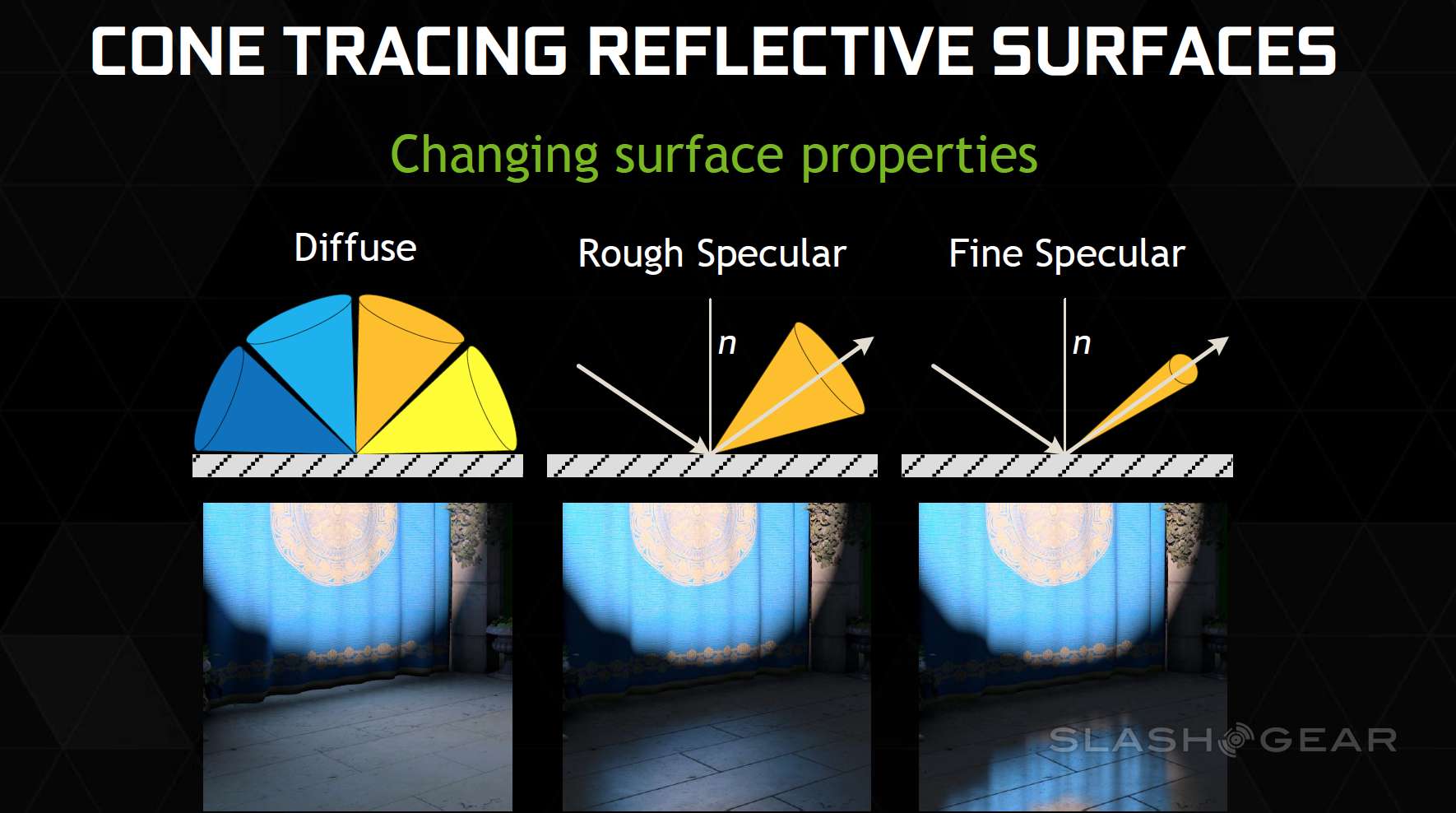 VXGI works with fabulous lighting features like 1-bounce indirect diffuse, specular light, reflections, and area lights. With this system, NVIDIA will be bringing on what they call "the next step in lighting." It begins with the idea that indirect light is unfocused and moves on to light bounce. As light makes each successive bounce off objects, it loses energy.