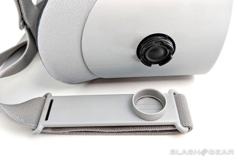 The headset features speakers that are planted near your temples. If you have a peek here, we've got a photo of the head strap removed – you'll see one of the two speakers peeking out. The audio is blasted out through this speaker and channelled back through the hard piece of plastic that leads back to the head strap.