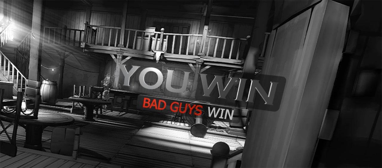 Once we loaded into the game, we all spawned into different areas of the saloon. When you die, you'll respawn to a random location on your side of the bar. This means that when you look out and see someone across the way, you know that it's someone that you need to shoot.