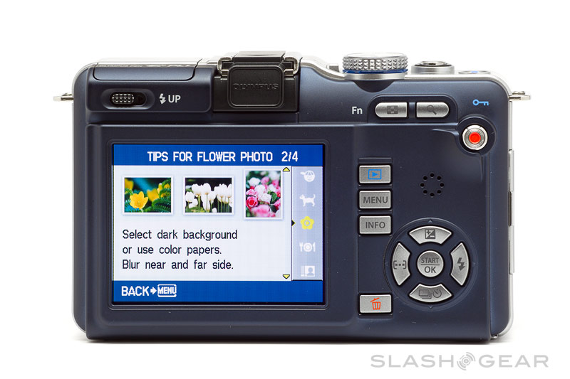 Unfortunately, our main ergonomic complaint concerns the new direct movie record button. While it's generally handy to have, on the PEN E-PL1 it's far too easy to trigger accidentally; a little more depth or slightly more resistance would make all the difference. As it is, you can remap that button so that it does nothing at all or toggles the LCD backlighting.