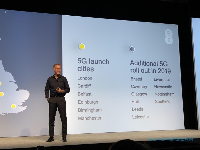 EE has already confirmed its first 5G launch cities. London, Cardiff, Belfast, Edinburgh, Birmingham, and Manchester will be in the first wave of locations to get 5G service. They'll be joined by additional cities over the course of the year. That includes Bristol, Coventry, Glasgow, Hull, Leeds, Leicester, Liverpool, Newcastle, Nottingham, and Sheffield.