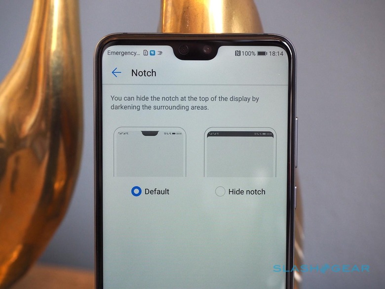 As a result, phone-makers – and users – have to decide whether to embrace or hide the display notch. In Apple's case, the iPhone X clearly opts to embrace it. Huawei's P20 and P20 Pro, meanwhile, hand that decision over to the user: you can choose to leave the display as normal, or "black out" the notch section at the top of the screen to disguise it.
