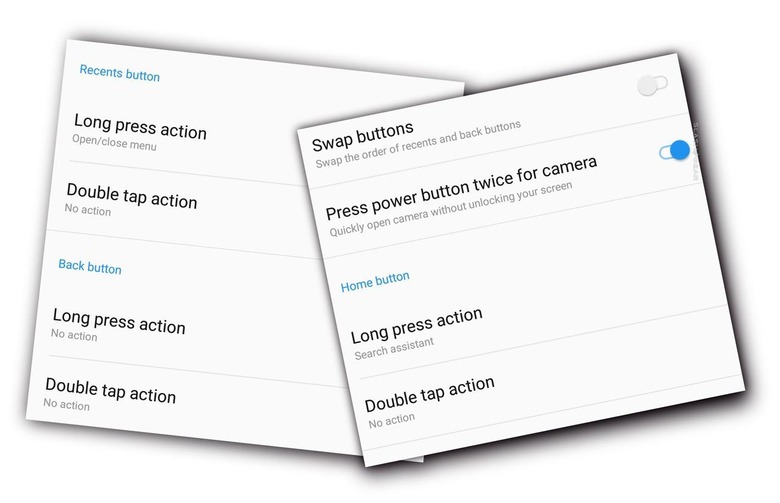 There's a whole lotta gestures going on here, especially now that there's no frontside home button. The gestures I toggled included the following: