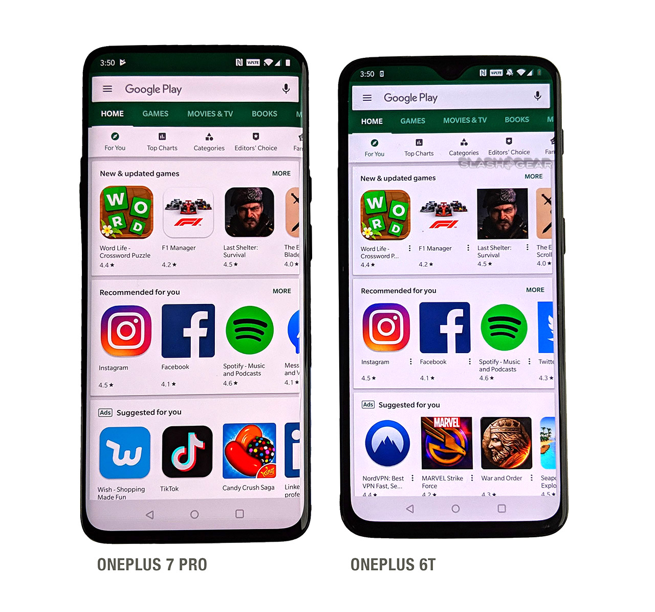 So, very, very similar to what was offered with the OnePlus 6T. They're so extremely similar that you'd be forgiven for mistaking one for the other. Below you'll see the OnePlus 7 Pro next to the OnePlus 6T.