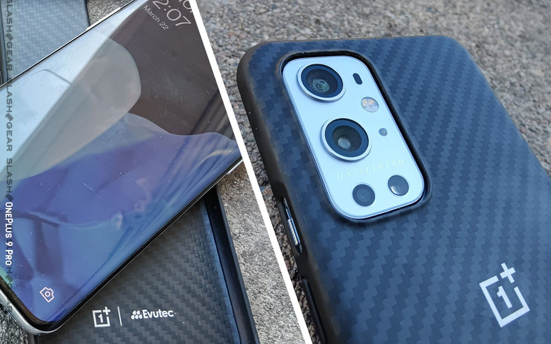 The OnePlus 9 Pro Sandstone Bumper Case in Black or Rock Gray was announced with a price of $24.99 USD. There's also a OnePlus 9 Pro Karbon Bumper Case (as shown in the photo above), available in black, for around $40 USD. There'll also be a "OnePlus 9 Pro Unique Bumper Case" available with a "OnePlus Droid" design with a price around $40 USD.