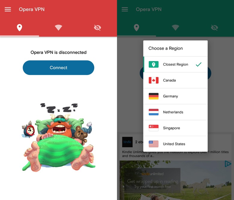 In May, Opera unveiled an iOS app that gives Apple device owners free VPN access for their various Internet browsing activities. That itself followed the company's announcement earlier this year that it was adding a free VPN to its browser. If you're on Android and feeling left out, good news: Opera is finally launching a free VPN app for Android, too, the addition of which means most Internet browsers now have at least one way to use Opera's offering.