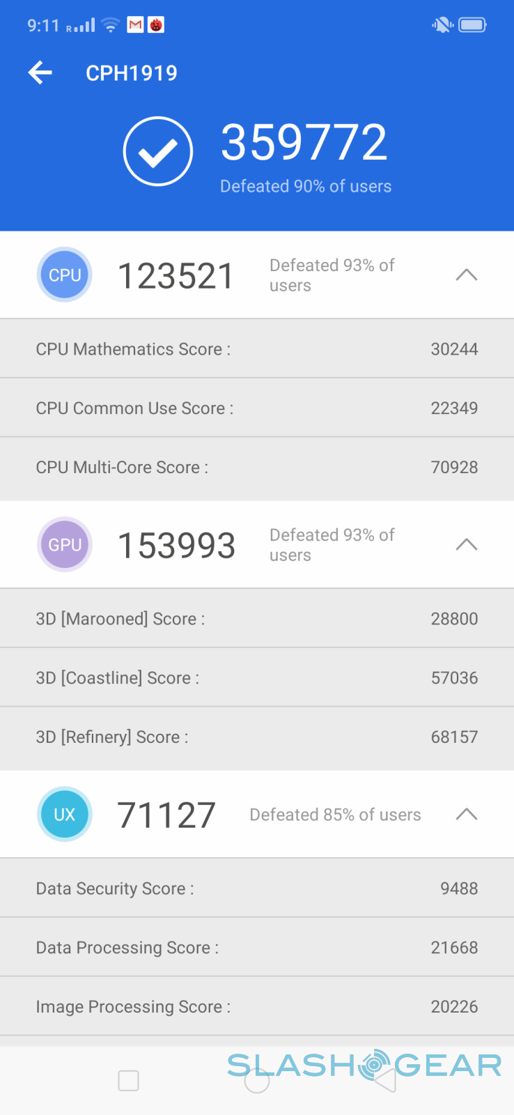 It probably doesn't require much imagination to figure out that the phone performs like a beast. Of course, part of that can be helped or hampered by the software running on top, which we'll get to later. Overall, the Reno 10x Zoom can stand tall beside the Samsungs and Huaweis of the market. Of course, we have benchmarks for that but, as always, your actual real-world mileage may vary.