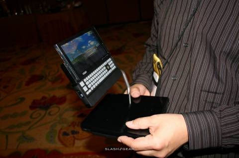 I had an "oh my god" reaction when I was shown OQO's latest portable PC, earlier today. From what I was told (watch video) this new version is a big improvement over the previous two editions. It features a much more usable QWERTY keyboard featuring integrated trackball, mouse buttons, up/down/left/right scroll on the lower left of the device. There's also really cool docking station (watch video). It sports Windows Vista or Window XP.[flv]https://www.mmtechonline.com/videos/oqov2slashgear.flv[/flv]Video – Part 1[flv]https://www.mmtechonline.com/videos/oqo2part2.flv[/flv]Video – Part 2Here's the kicker...it features Bluetooth, WiFi, 1GB of RAM, 1.5GHz VIA C7M ULV processor and Sprint Revision 0. EV-DO. There's also an HDMI-DVI adapter that's included in the package.There are three models available, the good ($1499), the better ($1699) and the best ($1849).