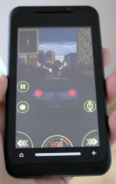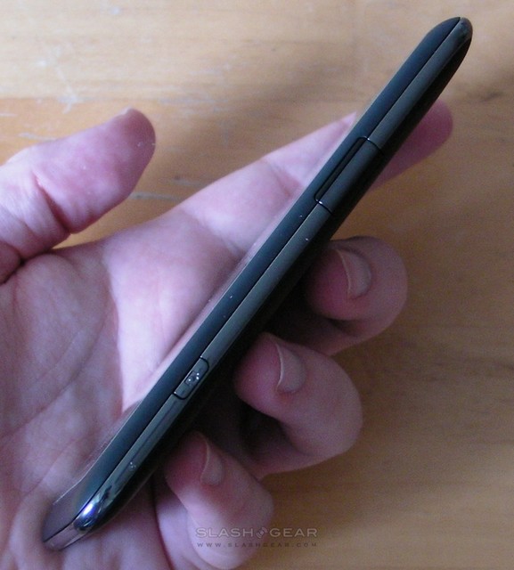 Still, horizontal support in every app is something we've been asking HTC for repeatedly, and the TG01 brings it first time around. Even the homescreen UI caters for it, re-orienting so that the bars can be readily paged through with the right-hand thumb. Despite the 1GHz processor, though, there's a curious amount of lag involved in screen rotation, with almost three seconds before the display catches up to how you're holding the smartphone. Similarly, waking the TG01 from standby is also a bizarrely punctuated affair, with the side-button requiring a lengthy press and then several seconds of screen blackness before the phone comes to life.