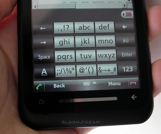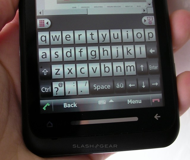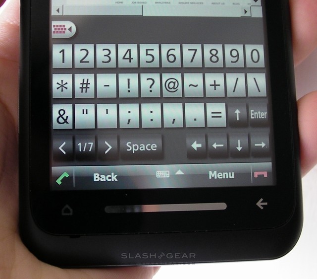 Happily Toshiba have loaded their own QWERTY keyboard onto the TG01, and that makes better use of the space. Separate screens for a phone-keypad style layout, traditional QWERTY and numbers/symbols (the latter with seven pages of different characters) are on offer, together with auto-completion. Some of the niceties we're used to from other touchscreen keyboards aren't offered, however; there's no pop-up to show which letter your finger is pressing, and nor is there a comprehensive auto-correction to smooth over common mis-types. The auto-completion is relatively comprehensive in its offerings, but they're presented in an undersized list, again at odds with the screen space to play with. Most criminally, though, is the placing of the space bar in the horizontal QWERTY layout, pushed all the way to the left of the 'Z' key and the same size as the letters. When HTC can make a workable on-screen keyboard on the comparatively compact 2.8-inch Touch Diamond2, we'd expect at least the same from Toshiba.