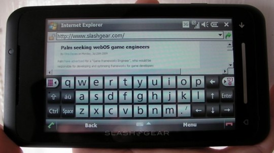 As a phone, the TG01 puts in a decent performance, with reasonable sound quality for both parties and a clear, well-spaced dialer app. WinMo6.1's ready integration with Exchange means the contacts app can be speedily filled; alternatively, Google Sync brings any contacts (and appointments) in from their service. One minor frustration is trying to get to a number pad mid-call, such as when navigating automated menus; this requires a couple of taps, rather than being an upfront option.