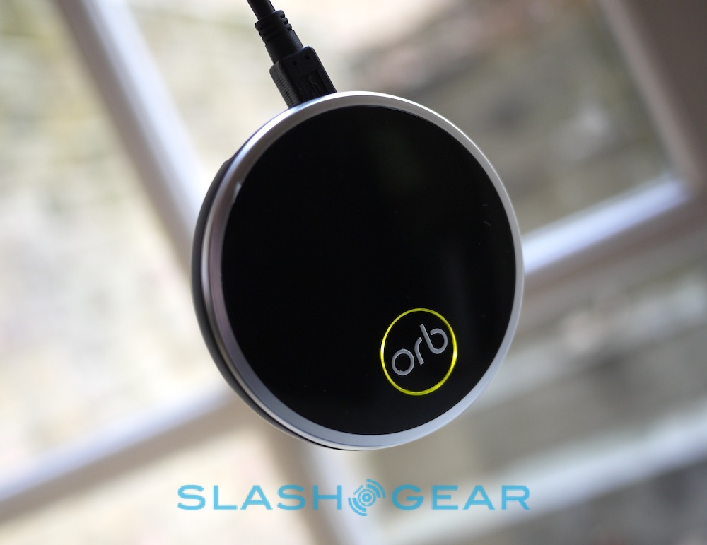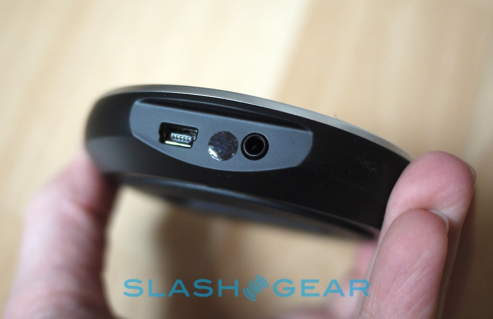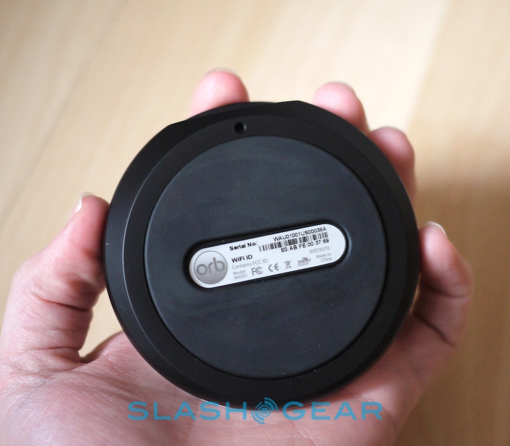 The MP-1 itself is a small plastic disc 3.28-inches across, about the size of a drinks coaster, with a rubberized base and an Orb logo on the top inside an illuminated status ring. Ports and controls are minimal: a miniUSB is used for initial setup and then power, while a 3.5mm stereo output is the only way to hook up speakers; meanwhile the only hardware button is a recessed reset nub on the bottom of the unit.