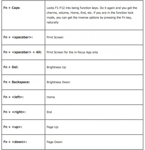 There are also quick access keys for Print Screen (and just the in-focus app), adjusting the brightness of the display, and navigating through documents and webpages.