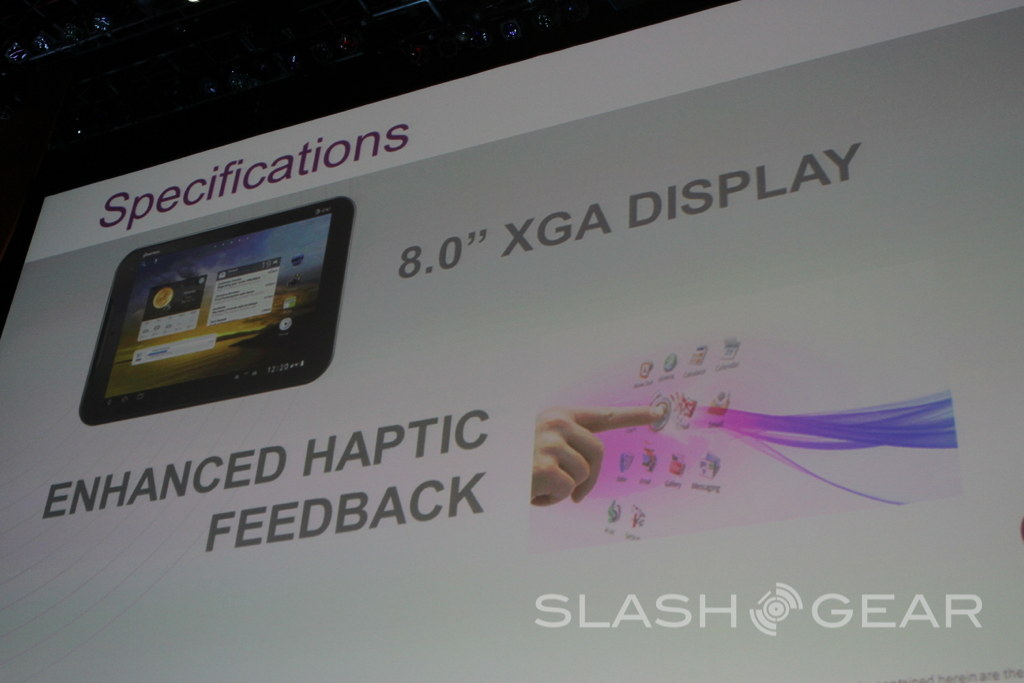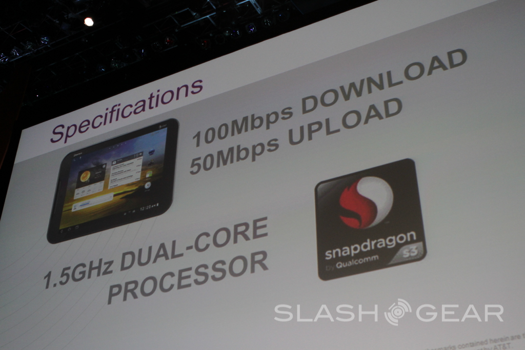 The Pantech Element, specifically, is waterproof. But that's not all that important when you consider how big a high-five this is between AT&T and Pantech as the latter is still on its way into the USA in the smartphone market. The Pantech Element has a 1.5GHz dual-core Snapdragon processor and has an 8-inch XGA display. This device has a non-localized enhanced haptic feedback display as well, providing a rather strange feeling for your tips. Throughout the set of announcements for the tablet, the Waterproof bit did keep coming up though, with the device dunked in a tank the entirety of the talk.