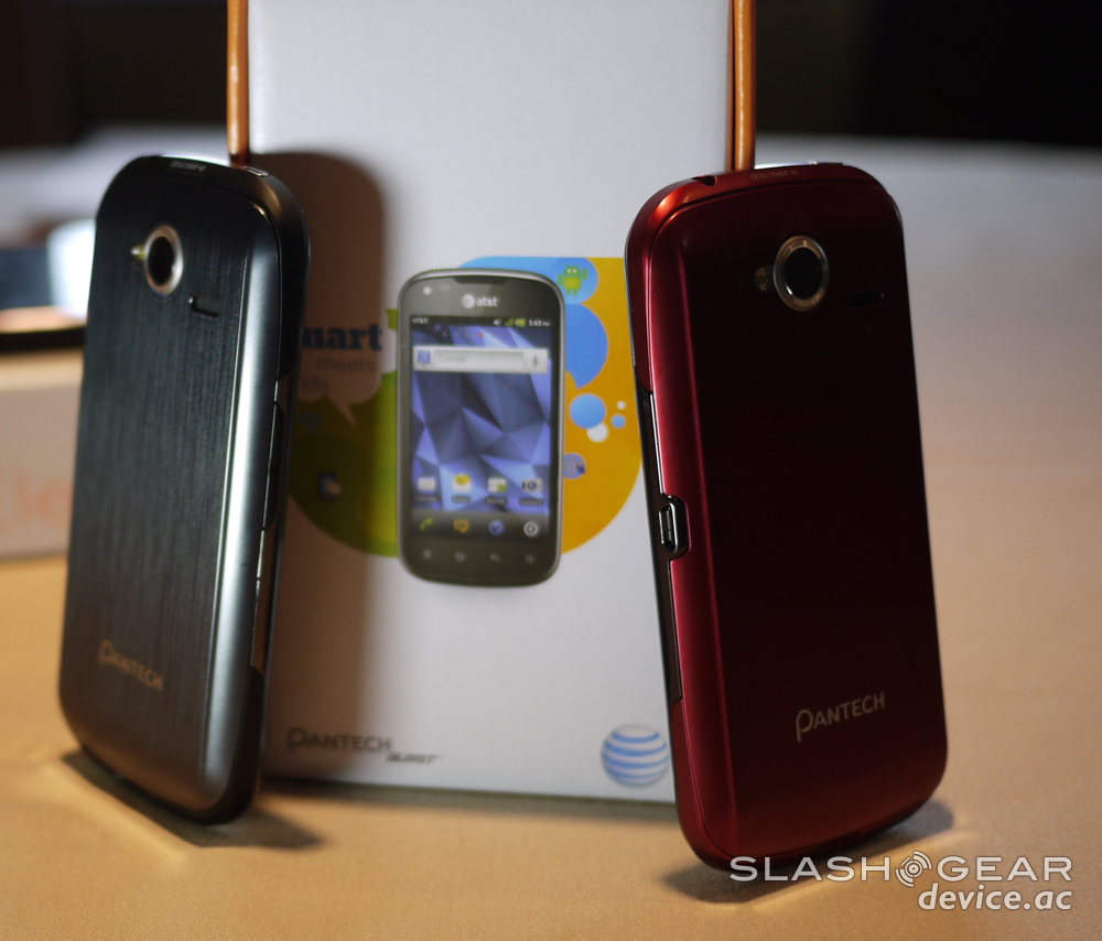 This week AT&T have revealed several new devices on their LTE network, notably a couple of Pantech devices that will be offered together – a tablet by the name of Element and a smartphone, which we've got here, by the name of Pantech Burst. The Burst has a 4-inch Super AMOLED touch screen at 480 x 800 pixel resolution, has a 5 megapicel camera on the back and a 2 megapixel camera on the front – the back capable of 720p recording. This device runs Android 2.3 Gingerbread right out of the box, has 16GB of onboard memory with a microSD card slot for expansion by 32GB if you wish, and it feels pretty nice to hold, if I do say so myself.