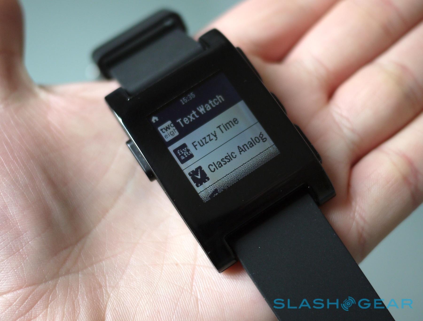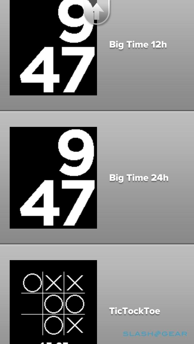 On its own, Pebble is pretty dumb. It comes with three watch faces preloaded – Text Watch, which prints "twelve one" or "five forty" rather than showing numbers; Fuzzy Time, which sacrifices accuracy in favor of more vague indicators like "noon"; and Classic Analog, with a traditional watch face along with day and date – and the music control app, as well as the ability to set alarms. If you want any more, you'll have to jump into the respective app store for your smartphone.