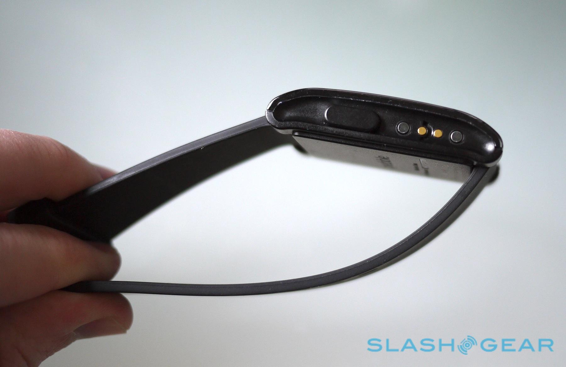 Pebble opted for a sealed, non-user-replaceable 140 mAh battery, since that allowed the watch to be made water-resistance. In fact, it can handle 5 ATM, meaning you can go swimming while wearing it or keep it on in the shower; it's also happy with either fresh or salt water. To charge it, there's a proprietary magnetic dock connector on the left edge, to which an included USB cable clings. There's no AC adapter in the box, though you can use a USB port on your computer or any standard USB charger (such as that came with a cellphone).