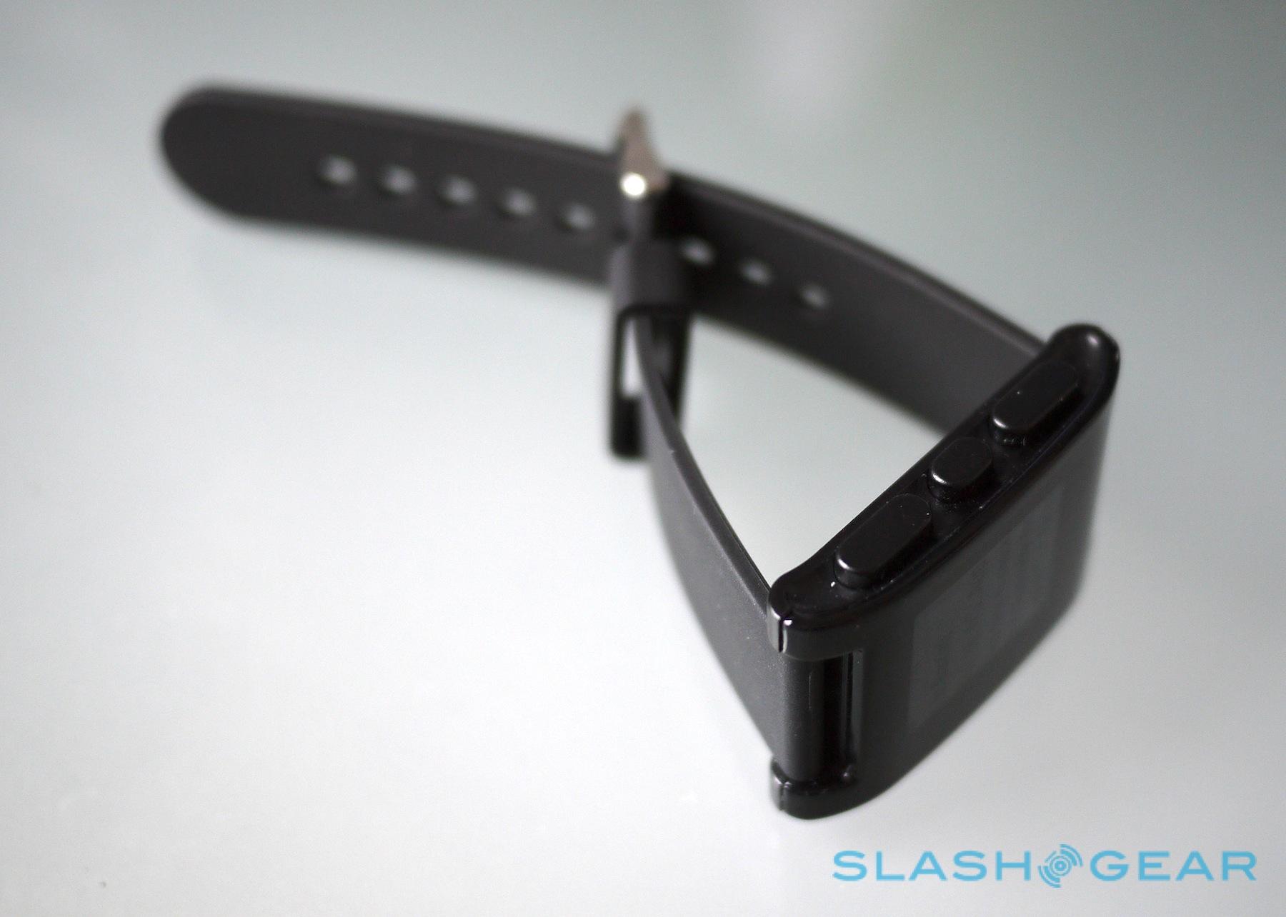 Inside, there's an ARM Cortex-M3 processor, a 3-axis accelerometer, a digital compass, and an ambient light sensor, as well as a Bluetooth radio. That, in hardware terms at least, supports Bluetooth 4.0, though currently the Pebble software locks it to Bluetooth 2.1+EDR. A vibration motor is easily felt, though it's also audible; we would've been happy with a more discrete sensation (since it's right on our wrist) for something that couldn't be heard by people sitting nearby.