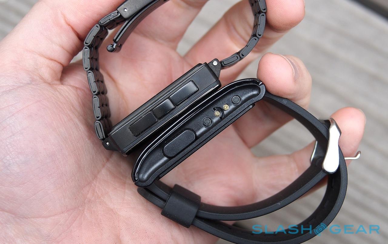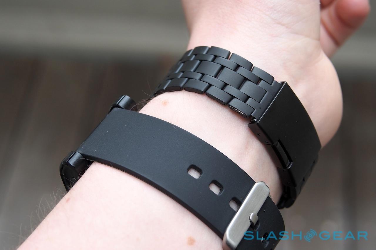 Sensors include ambient light – which controls the LED backlight for the display – along with a 3-axis accelerometer and a magnetometer; you also get the vibration motor for notifications (we still wish we could tone down its aggressive buzz, which could easily be half as strong and still noticeable on your wrist). In fact, the only real difference is the addition of a multi-colored LED to the lower left of the display, which lights up to show charging status.