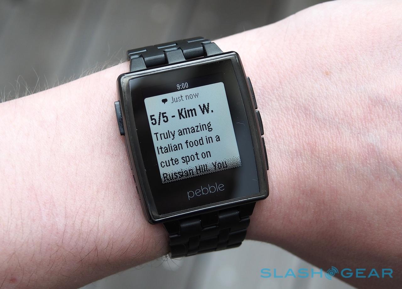 Whatever it is, it's not ready yet. What you do get is easy access to the wealth of apps developers have been coming up with for the smartwatch, including the headline titles Pebble announced over the past few months. We're big fans of the Yelp app, which brings reviews for nearby venues to your wrist (and can suggest a place when you shake your arm), and the Foursquare app demonstrates just what wearables should do: take a few pieces of core functionality and make them incredibly quick and easy to access.