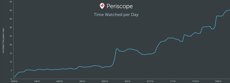 Periscope dropped a few graphs to go along with the announcement, one of which you can see below. The amount of time users spend watching video everyday has been, more of less, steadily increasing over the weeks since launch. The most notable part of the data is this: Periscope users are watching more than 40 years of video every single day via their Android and iOS devices.