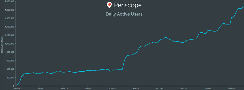 The company says it cares most about the Time Watched metric, the reasons for which are numerous: it best reflects the service's value for both viewers and broadcasters, says Periscope, and it better shows the companies growth than monitoring the number of daily active users the company has — though that latter metric has also seen considerable growth over the past few months as indicated by the graph below.