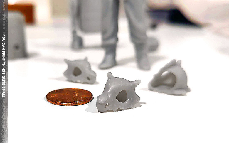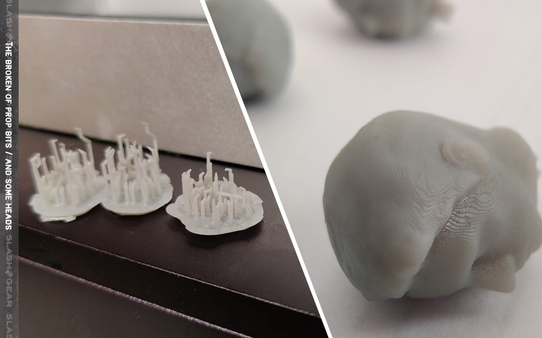If you get very, VERY close to the prints you've made with a macro lens, you'll notice the layers. Here you'll see how tiny the detailing got on a set of action figure heads. This is after they've been cleaned up a bit and dried – all 3D prints come out wet with resin when they're removed from the print tray with this printer.