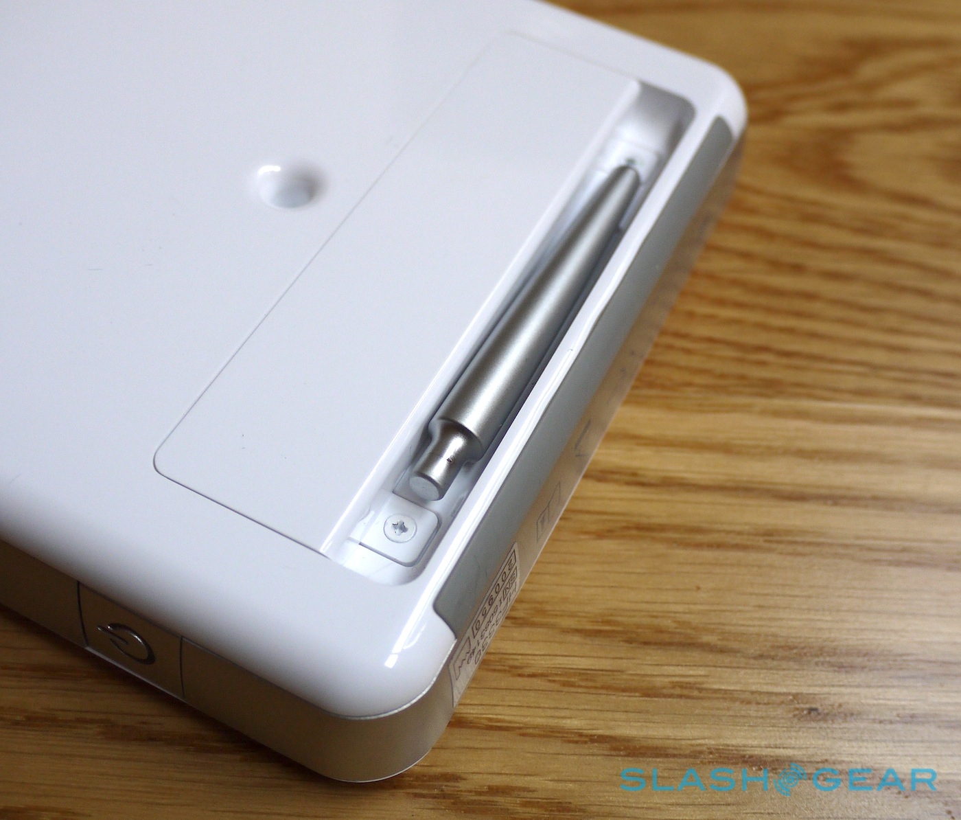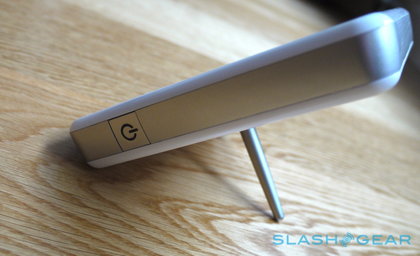 A notch on the lower rear panel holds a metal rod, which can be slotted into a hole to prop the goLITE BLU up. Magnets keep the rod in place in both, and there's a faux-leather slip case for transporting the whole thing. Unfortunately there's only one possible angle at which you can stand the light unit at, rather than an adjustable base.