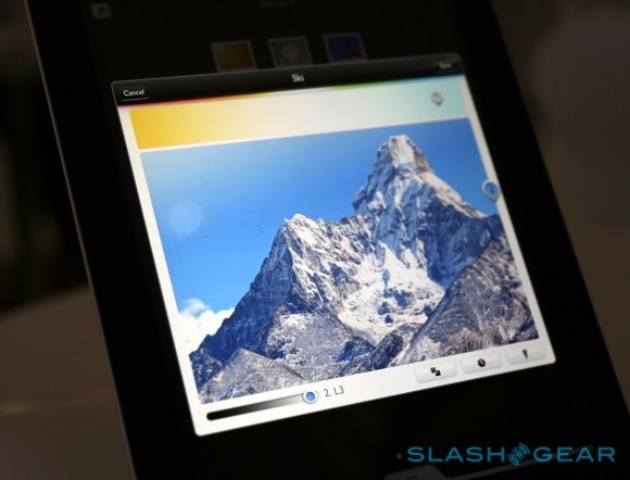 However, there's also color sampling to be played with. Philips includes a number of photos in the app – scenes like beaches or mountains – and by dragging pointers linked to each lamp, you can recreate the color of that point in the image. Again, custom setups of multiple lamps tied to different points can be saved, or you create a random arrangement by physically shaking the tablet or iPhone.