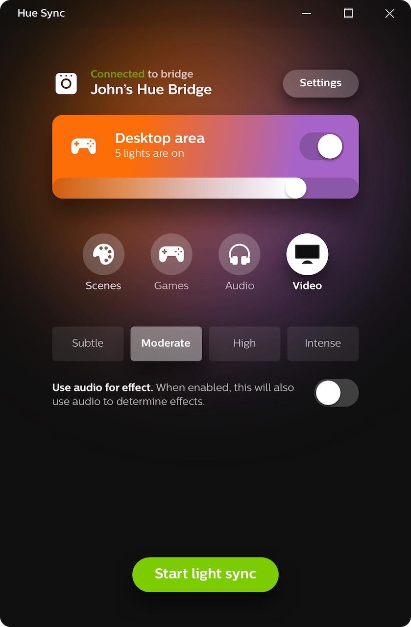 To test Hue Sync out, I set up a handful of Hue A19 color bulbs and a Hue Light Strip around an iMac. The flexible LED strip went behind the computer, while the color bulbs flanked it. I then set up a new entertainment group in the Hue app then, with the Hue Sync app installed on the Mac, I could have the lights automatically react to what was happening on-screen.