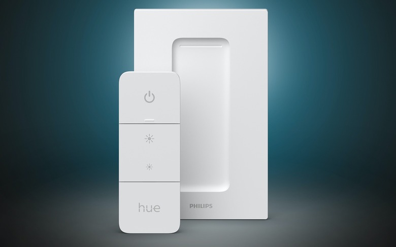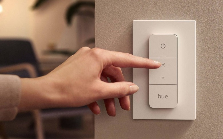 If installing something into existing circuits doesn't appeal, the Philips Hue Dimmer Switch is getting a 2021 upgrade. As before, it allows for control over a certain set of lights without pulling up the app. You can turn a preprogrammed scene on and off, as well as dim it.