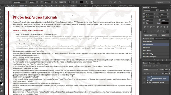 2. Text Editing in Photoshop – You'll now have the ability to edit blocks of text, paragraphs and open type, justification and more. It's now easy to move through the document with Styles. Set up whichever styles you like, naming them thusly, then hitting each block of text as you want it edited. This should make basic text editing of large blocks of text one whole heck of a lot easier in Photoshop.