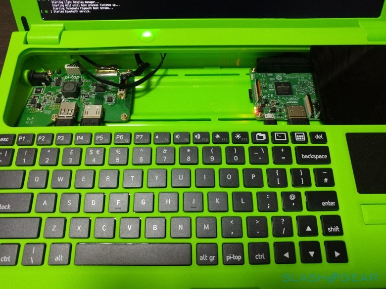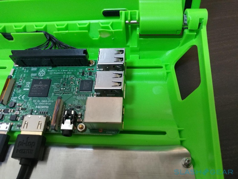 The Raspberry Pi doesn't connect to the peripherals directly, save for the keyboard/touchpad combo. Instead, everything is routed to pi-top's specially made Hub, from power, to display, to audio, and even to GPIO. The latter might be an important consideration for seasoned RPi users. You do not have direct access to the RPi's GPIO pins since it connects to the Hub via that breakout cable. Not all is lost, however, since you can regain that functionality through the pi-topPROTO add-on.