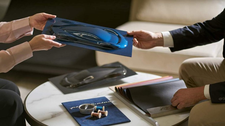 Right off the bat, the intricate detailing is worth writing home about. The Battista has a carbon fiber body, but the client wanted something other than black. So, Pininfarina infused the bare carbon fiber body with Icona Blu threads to give it a mysterious vibe.