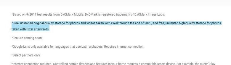 Google says that the change will only affect photos and videos uploaded after 2020, so it won't go back and downsize existing uploads. Google is poising the Pixel 2 as the ultimate smartphone camera, a claim that is being backed by DxOMark's high praises. Having unlimited cloud storage for those extremely high resolution photos, definitely helps the spiel.