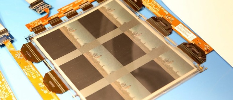 Plastic Logic showed us two versions of the screen technology, one a color panel that uses a special filter layer over the top of the e-paper screen itself, and another smaller, monochrome version better suited to a pocket-sized mobile device. Both use the company's unique plastic transistor technology, meaning they're virtually indestructible: you can bend and twist them, drop them, or hit them with hammers, and they'll still keep working. Right now, the color screen shows six smaller video preview panes, something Plastic Logic says is down to its own test driver equipment, rather than a limitation of the panel technology itself.