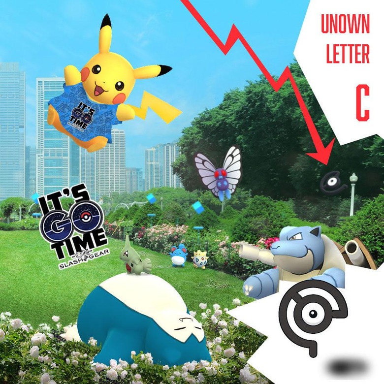 We're wishing extra hard that this means there'll be an UNOWN mini-event to celebrate either the first big official real-world event held by Niantic, OR – or, that it's for a birthday. The birth of Pokemon GO celebrated by a C. Or a new UNOWN when we've not actually caught more than a couple of the others. We'll see about that!