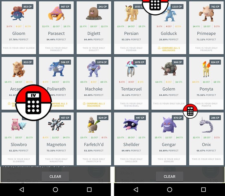 The app known as IV Calculator – PokeGO Master is made for Android to create a calculator that sits on top of the Pokemon GO game app. Whenever the user needs to calculate some individual values, they just tap the PokeGo Master icon (a tiny yellow circle), and several panels appear.