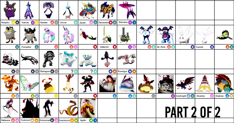 In a separate thread, another ResetEra user by the name of Joseki arranged the Pokemon from previous generations in a handy grid – Pokemon with a green background are in Sword and Shield, Pokemon with a dark green background have a new Galarian form, and Pokemon with a white background won't be in the game.