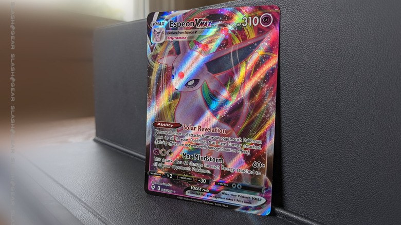 If you'll look to this Espeon VMAX in the light, here, it'll be clear why this set is worth the effort in finding to buy. Cross your fingers and your toes in hopes you get some VMAX action for yourself.