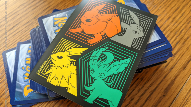 First take a peek at the Elite Trainer Box protective sleeve design. You've got the Eevee evolution action in full effect. It's strange to see this combination of Eevee evolutions, since they're not just the first three – they're selected for their color, cross-generation.