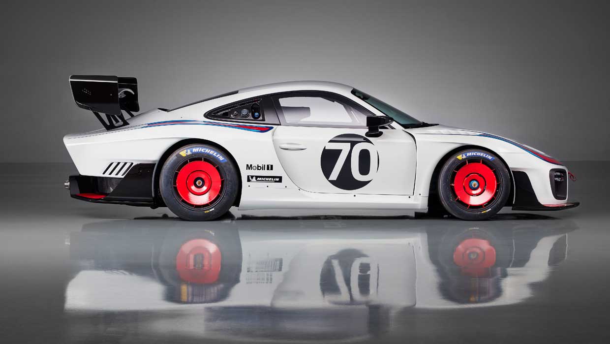 Porsche says lots of details on the car are a salute to winning racers of the past. The wheels are meant to remind of the 935/78. The end plates on the rear wing have LED lights adopted from the 919 hybrid LMP1 racer. The side mirrors are from the current 911 RSR that won at Le Mans. Exposed titanium tailpipes are modeled on those from the Porsche 908 from 1968.