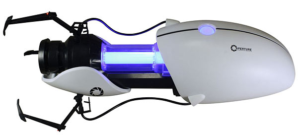 The Portal series has long been a favorite amongst gamers looking for not only a fantastic fun-filled puzzle-room experience, but a bit of deranged humor along the way as well. Truly it is appropriate then that the makers of this gun, NECA, have chosen ThinkGeek to be one of the few to sell it. This is Aperture Science's Handheld Portal Device, a fabulous masterpiece of science, and you'll be owning it very, very soon.